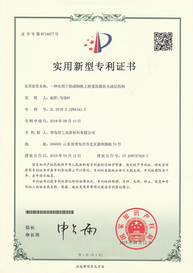 一種(zhong)應用于(yu)船或鋼(gāng)鐵上的(de)重防腐(fǔ)防火塗(tu)層結構(gou)